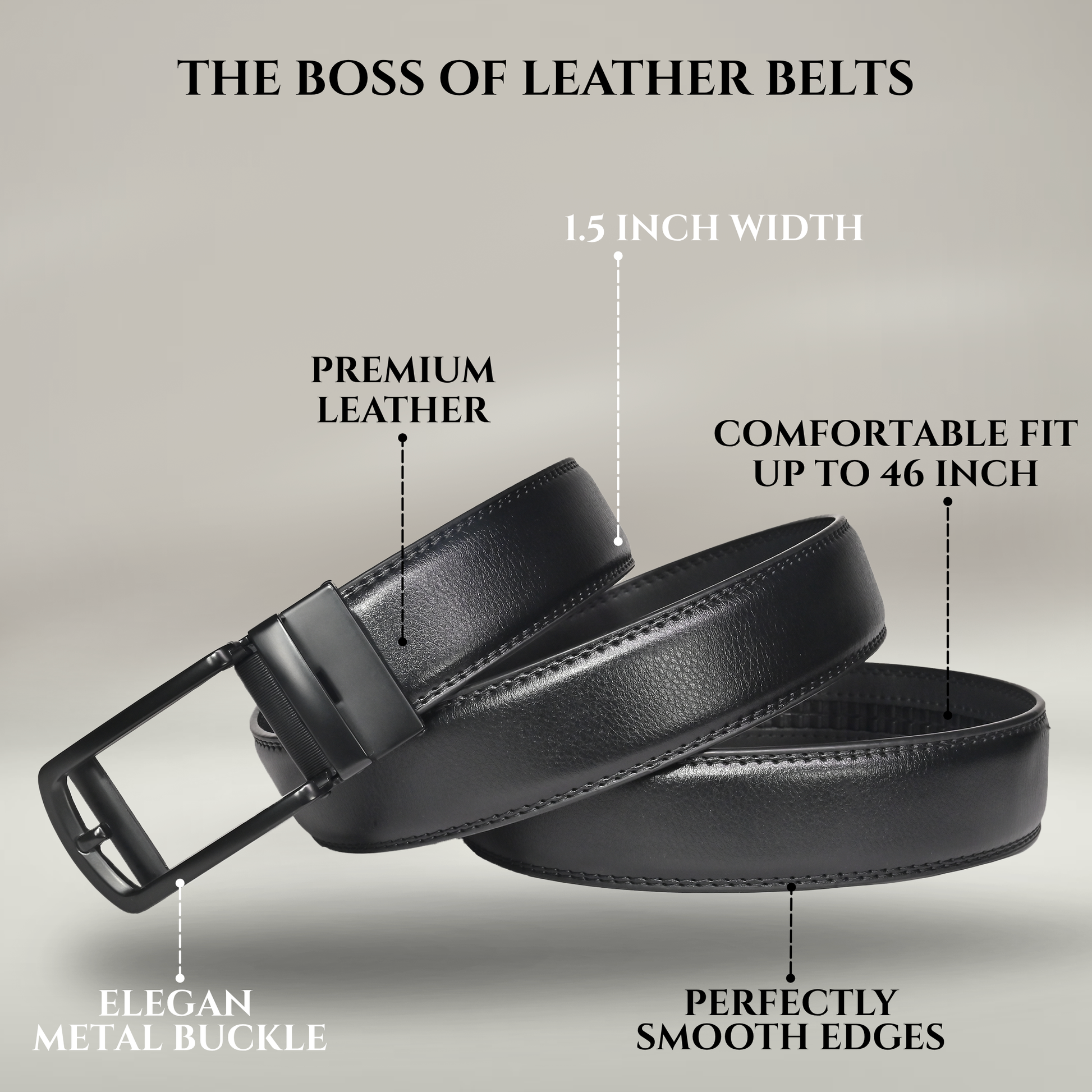 RABELL Genuine Leather Belt for men with Auto Lock mechanism Fit's size 28 to 46 inch (Phantom black)